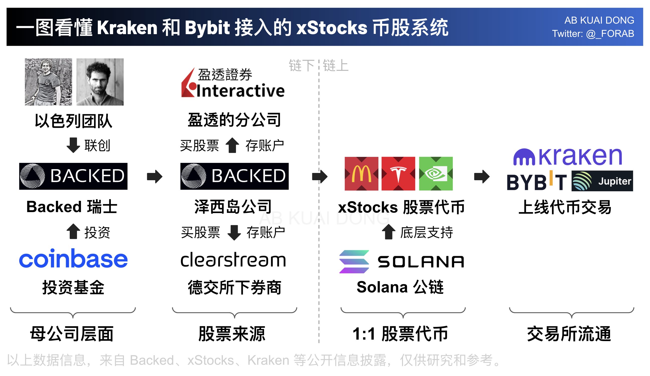 简单来说,xStocks 原理是先在券商买真股票,再在链上发行对应的股票代币,所以也可以说它是股票锚定币。