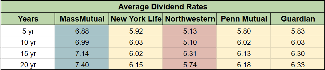 Whole Life Insurance Dividends Chart [Rate History of the Top Companies]