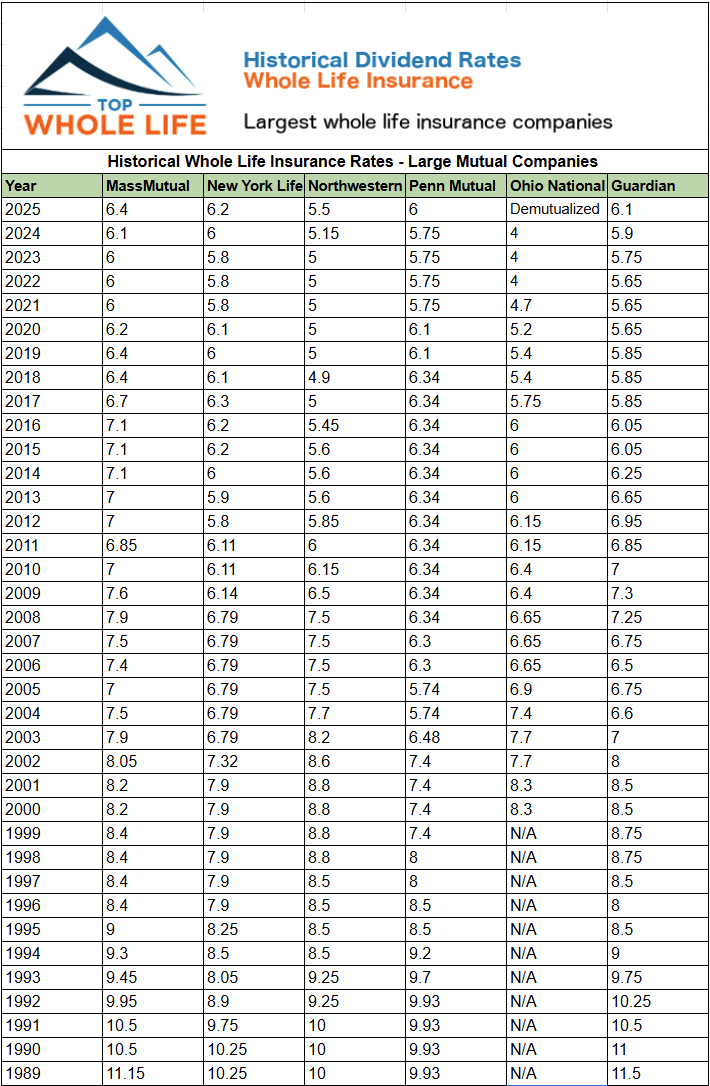 Whole Life Insurance Dividend Rate History [2025 Update]