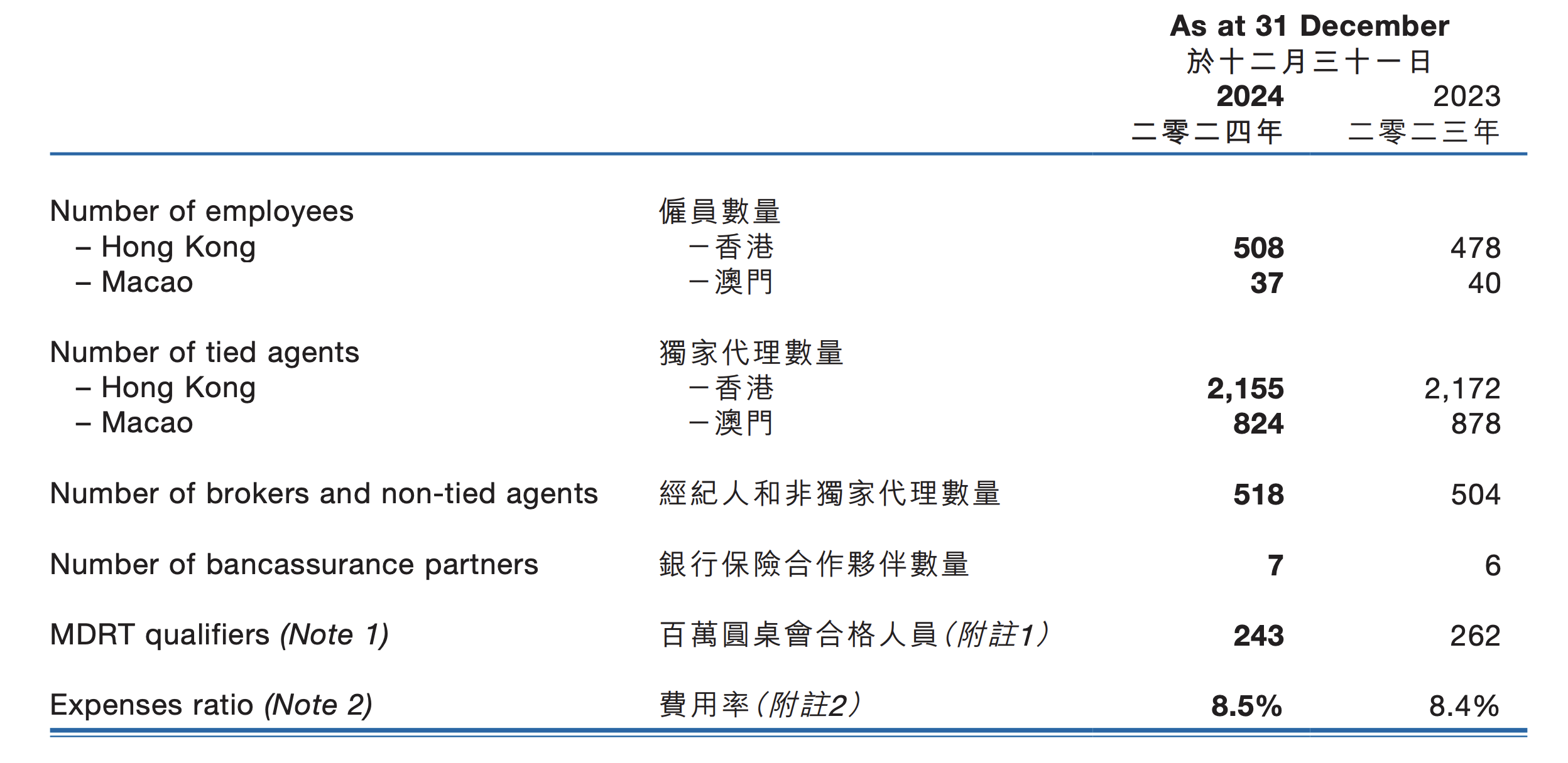 於二零二四年,在保險業務方面,我們仍然獲授權在香港從事壽險和年金險、連結式長期險、永久健康保險及退休計劃管理長期保險業務。本集團還通過分支機構在澳門營運,並獲准在澳門銷售人壽保險產品。